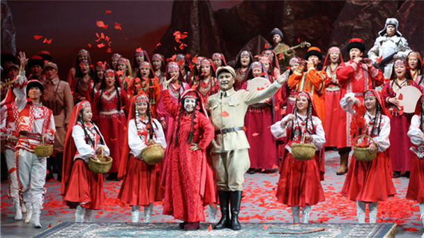 早在1963年,电影《冰山上的来客》一经播映立即在全国观众中引起轰动,尤其是片中的主题曲《怀念战友》《花儿为什么这样红》等更是家喻户晓,深入人心,成为一代人口口相传的民族旋律。2014年,国家大剧院将这部经典作品以歌剧形式搬上舞台,让那朵见证着爱情、见证着民族情谊的花儿再度绽放。