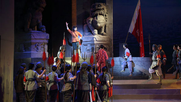 经典民族歌剧《洪湖赤卫队》首排于1958年,1959年10月该剧作为湖北省向国庆十周年献礼剧目首次晋京演出,从此成为中国民族歌剧的瑰宝。根据该部歌剧拍成的同名电影更是家喻户晓,风靡华夏大地。剧中著名唱段《洪湖水,浪打浪》《没有眼泪没有悲伤》《看天下劳苦人民都解放》等,成为半个多世纪以来刻录于国人心中的集体记忆,凸显了共产党人坚定不移的革命信仰和与广大百姓的鱼水情深。