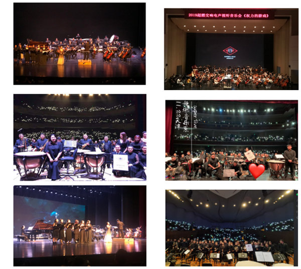 乐团目前已经出品多台音乐会。包括超燃音乐系交响电声音乐会 《权力的游戏》、《VICTORY》、《加勒比海盗》。久石让电影配乐作品交响音乐会《太阳照常升起》;二次元音乐会《海贼王》;武侠交响音乐会《笑傲江湖大话西游东邪西毒》。与众多知名指挥家、演奏家密切合作,包括中央音乐学院高参、曹慧、郝楠、原丁。单簧管博士、中国人大副教授房博然,以及中国爱乐乐团的音乐家们,编创演出音乐会《爱乐之城-双钢琴》,《爱乐四重奏》等。